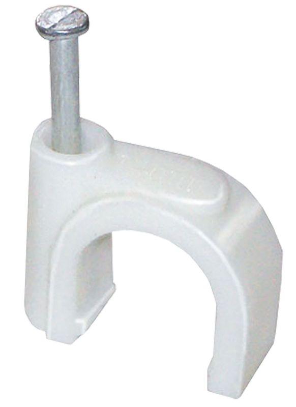 Скоба с гвоздём предназначена для быстрого и надежного крепления круглых кабелей к дереву, прессованному картону, швам кирпичной кладки, к штукатурке, бетону, кирпичу. Изготовлены из гибкого негорючего ударопрочного полипропилена, гвоздь — закаленная оцинкованная сталь.