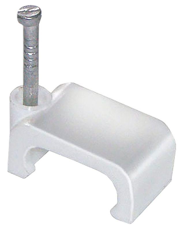 Скоба с гвоздём предназначена для быстрого и надежного крепления плоских кабелей к дереву, прессованному картону, швам кирпичной кладки, к штукатурке, бетону, кирпичу. Изготовлены из гибкого негорючего ударопрочного полипропилена, гвоздь — закаленная оцинкованная сталь.