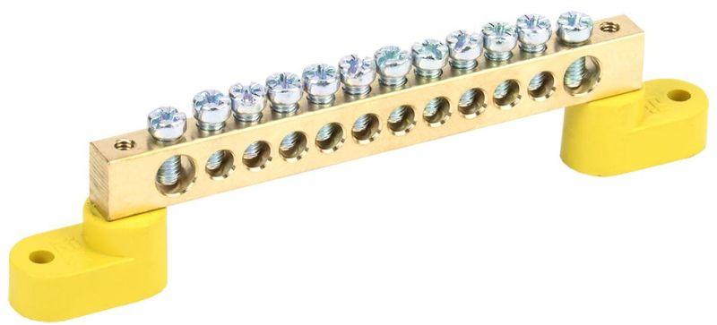 Шина PE «земля» ШНИ-8х12-12-У2-Ж на двух угловых изоляторах IEK YNN10-812-12C2-K05 — заземляющая шина для распределительного щита оптом