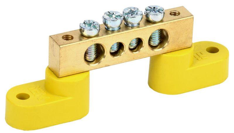 Шина PE «земля» ШНИ-8х12-4-У2-Ж на двух угловых изоляторах IEK YNN10-812-4C2-K05 — заземляющая шина для распределительного щита оптом