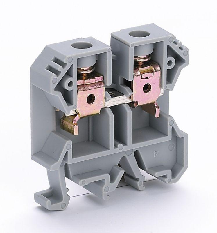 Зажим наборный серии ЗН-101 Dekraft ; номинальный ток — 100 А; сечение проводов от 1 до 16 кв.мм; цвет and ndash; серый; материал корпуса — полиамид; материал клемм и винтов and ndash; латунь; монтаж — защелкиванием на DIN-рейку; количество в упаковке and ndash; 50 шт. Клемма выполнена таким образом, что обеспечивает двойной обжим проводника. Это обеспечивается в том числе и за счет насечек на клеммах. Зажимы наборные синего цвета применяются для присоединения нулевого рабочего проводника.