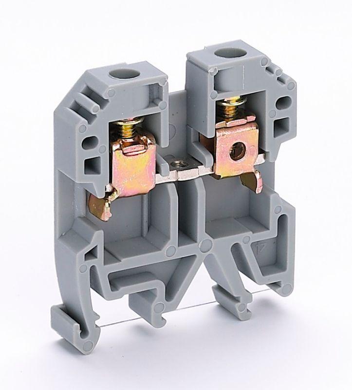 Зажим наборный серии ЗН-101 Dekraft ; номинальный ток — 50 А; сечение проводов от 1 до 6 кв.мм; цвет and ndash; серый; материал корпуса — полиамид; материал клемм и винтов and ndash; латунь; монтаж — защелкиванием на DIN-рейку; количество в упаковке and ndash; 50 шт. Клемма выполнена таким образом, что обеспечивает двойной обжим проводника. Это обеспечивается в том числе и за счет насечек на клеммах. Зажимы наборные синего цвета применяются для присоединения нулевого рабочего проводника.