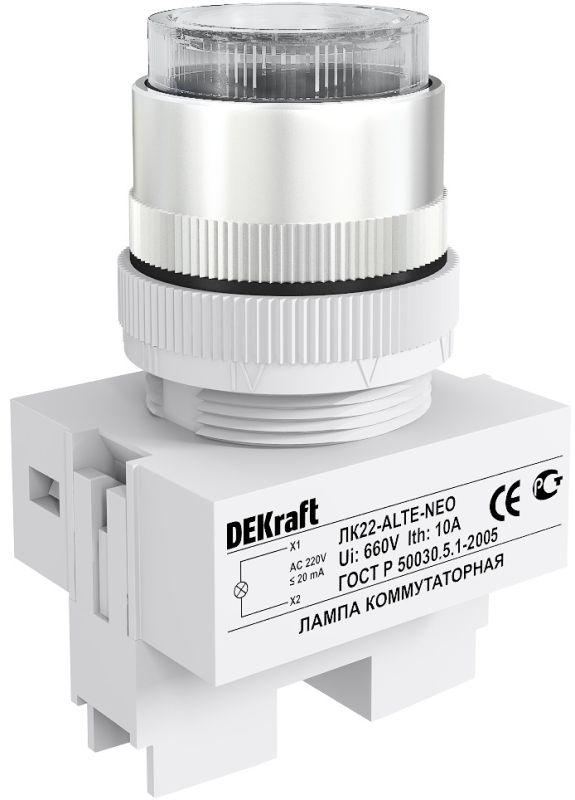 Лампа сигнальная ADDS серии ЛК-22 Dekraft; светодиодная; белая неоновая; круглая; номинальное напряжение 220 В пер.тока; установка — на панели или двери; степень защиты — IP54. Лампы сигнальные предназначены для индикации состояния электрических цепей и коммутационных аппаратов. Использование в лампах светодиодных матриц (LED) снижает потребление электроэнергии. Низкая чувствительность к колебаниям напряжения позволяет использовать их в электрических цепях с нестабильным напряжением.