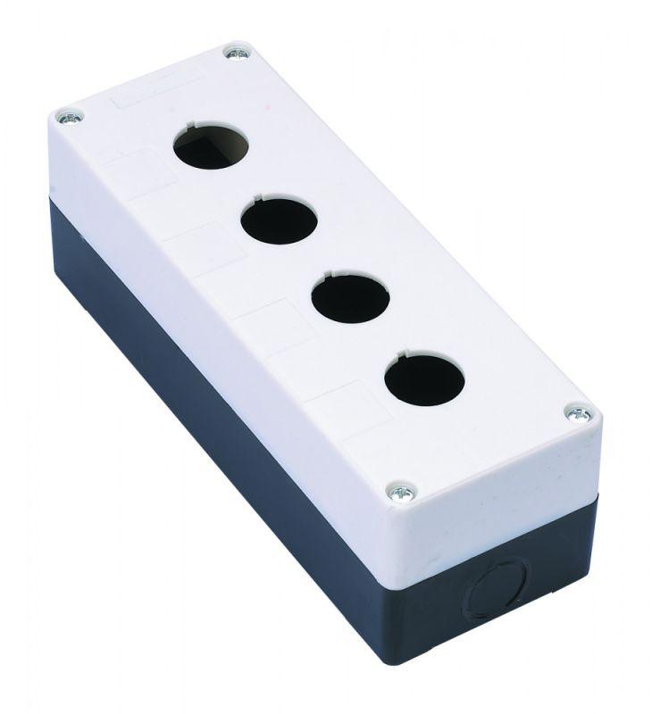 Кнопочный пост серии КП-101 Dekraft ; кол-во устройств – 4; диаметр устанавливаемых устройств — 22 мм; материал – негорючий ABS пластик; способ установки — навесной/cтационарный; ВхШхГ – 195х70х65 мм; степень защиты – IP54. Посты предназначены для монтажа в них светосигнальных индикаторов, кнопок управления, переключателей для последующего дистанционного управления процессами, сигнализации. Кнопочные посты комплектуются кабельным вводом со степенью защиты IP54 и сальником.