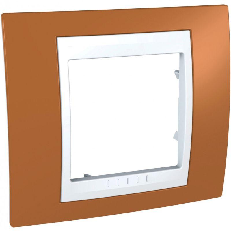 Рамка Schneider Electric UNICA ХАМЕЛЕОН (оранжевый) одинарная с белой декоративной вставкой.
