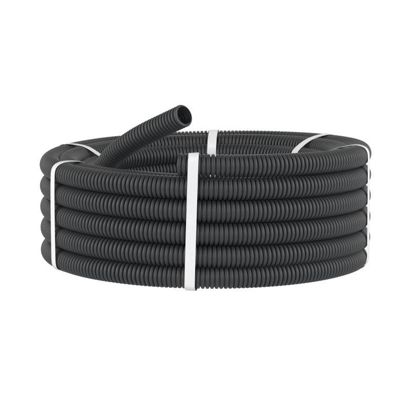 Легкая гибкая труба из ПНД предназначена для прокладки в штробах стен, стяжке полов, используется в монолитном бетоностроении. Ударная прочность труб — не менее 2 Дж при температуре — 40оС. Диаметр трубы — 25 мм. Цвет — черный.