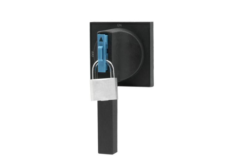 Ручка поворотная на дверь шкафа РП-308; состоит из ручки, удлинительной оси и поворотной рукоятки; предназначена для ручного дистанционного переключения (включения и отключения) автоматического выключателя серии ВА-308 без открытия двери шкафа.