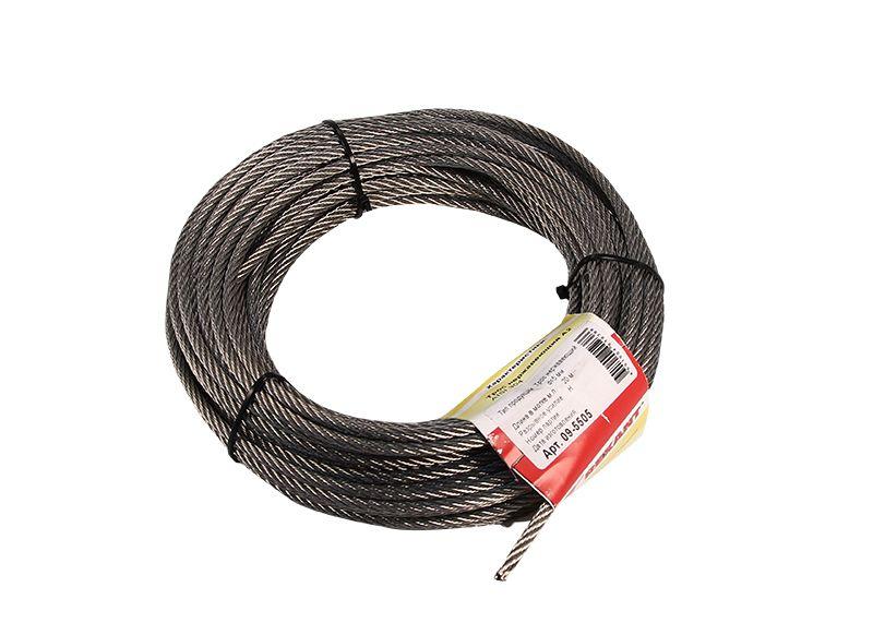 Трос изготовлен из высококачественной нержавеющей проволоки, что обеспечивает устойчивость к коррозии и внешним воздействиям окружающей среды, а также позволяет использовать его в агрессивных средах.