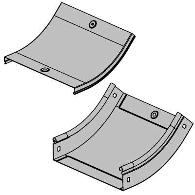 Он совместим с лотками шириной 150 мм и высотой 50 мм. Внутренний радиус аксессуара – 150 мм. Толщина стали – 0,8 мм. Исполнение – «сталь, оцинкованная по методу Сендзимира».