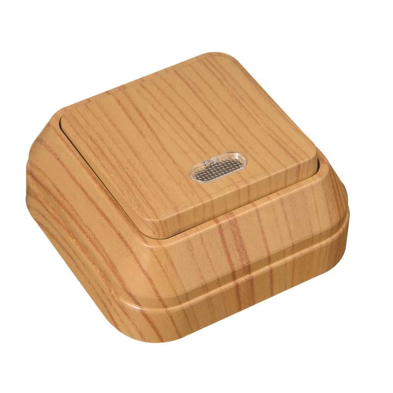 Выключатель 1-кл. ОП 10А IP20 с подсветкой дуб Makel 45321 — выключатели, переключатели оптом