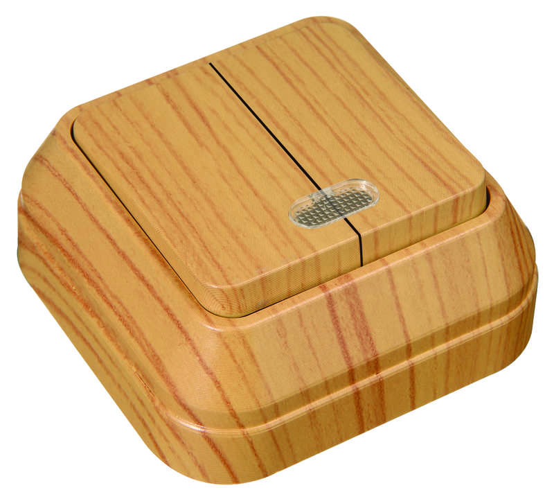 Выключатель 2-кл. ОП 10А IP20 с подсветкой дуб Makel 45323 — выключатели, переключатели оптом