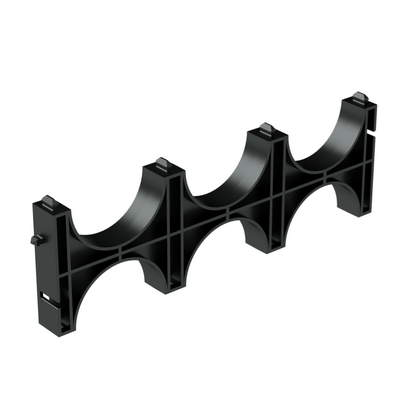 Назначение держателя расстояния (кластера) для двустенных труб — закрепление труб в определенном положении и сохранение между ними фиксированного расстояния. Кластер имеет пазы для трех труб диаметром 63 мм. Если необходимо, кластеры могут быть соединены между собой, чтобы разместить большее количество труб.