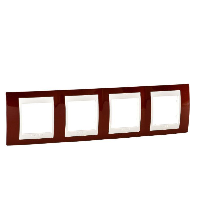 Рамка Schneider Electric UNICA ХАМЕЛЕОН (терракотовый) четырёхместная с бежевой декоративной вставкой.