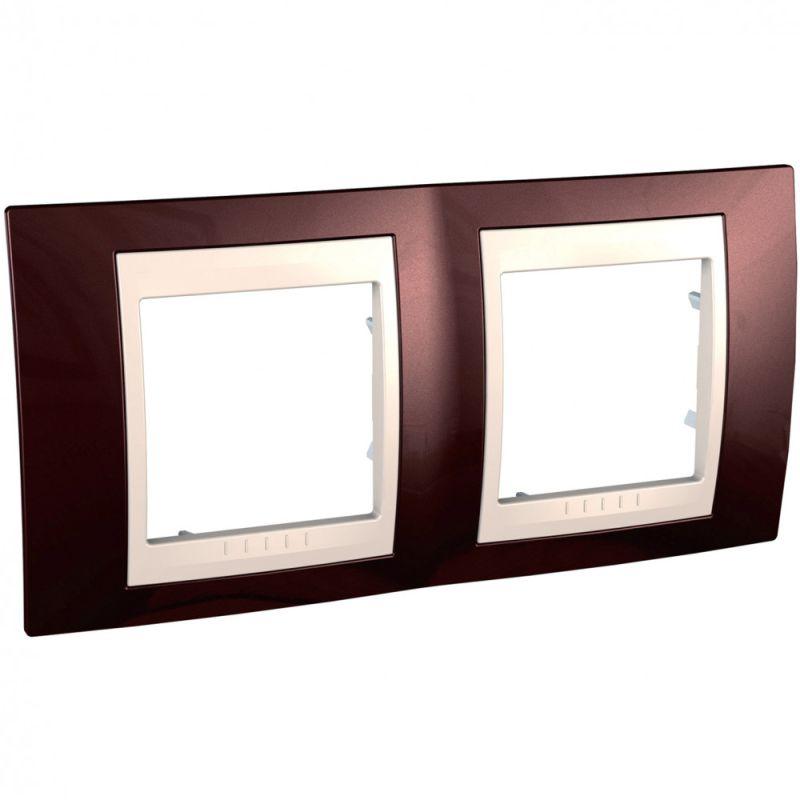 Рамка Schneider Electric UNICA ХАМЕЛЕОН (терракотовый) двухместная с бежевой декоративной вставкой.