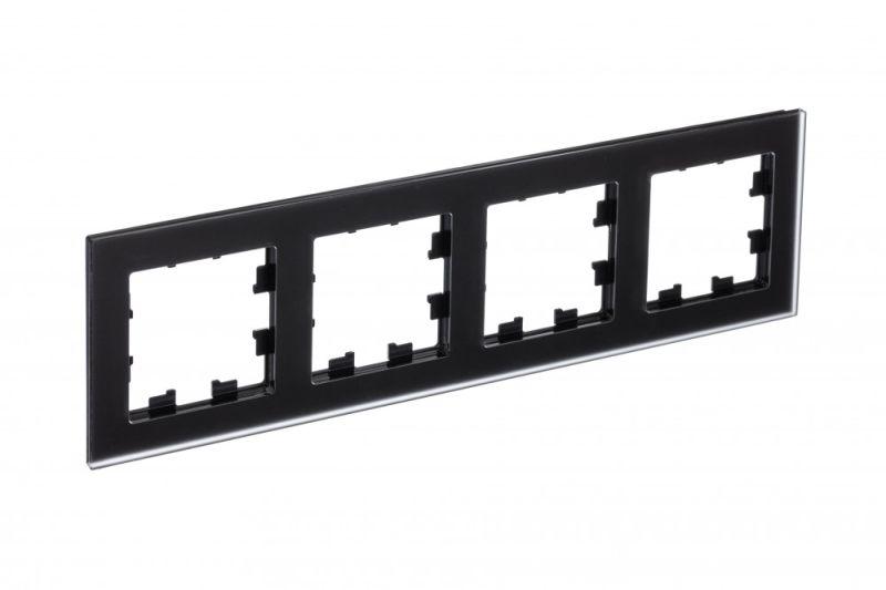 Рамка Systeme Electric (ранее Schneider Electric) серии AtlasDesign Nature (цвет чёрное матовое стекло) 4-постовая.
