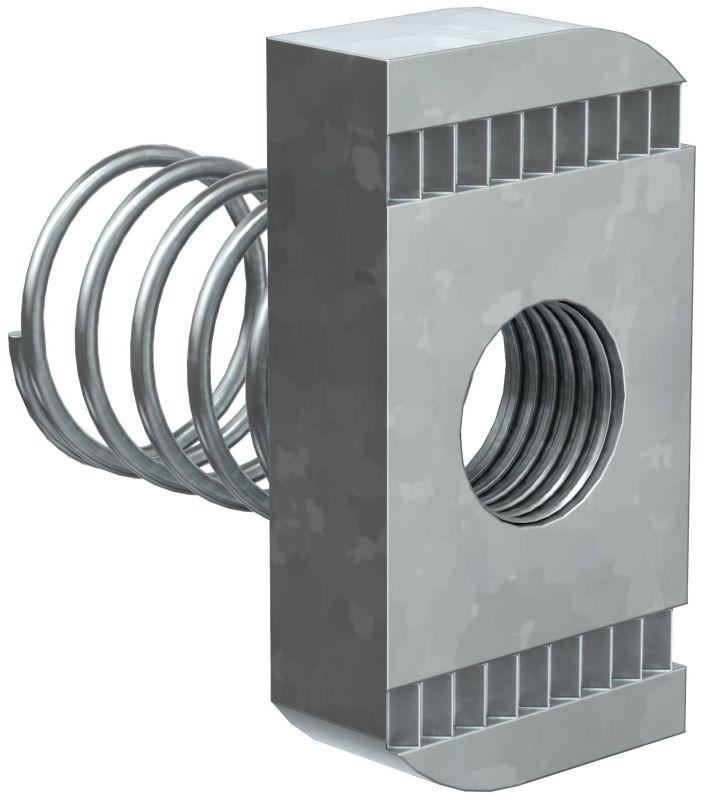 Гайка канальная с пружиной предназначена для крепления элементов STRUT-системы между собой, а также кабельных лотков к STRUT-консолям.