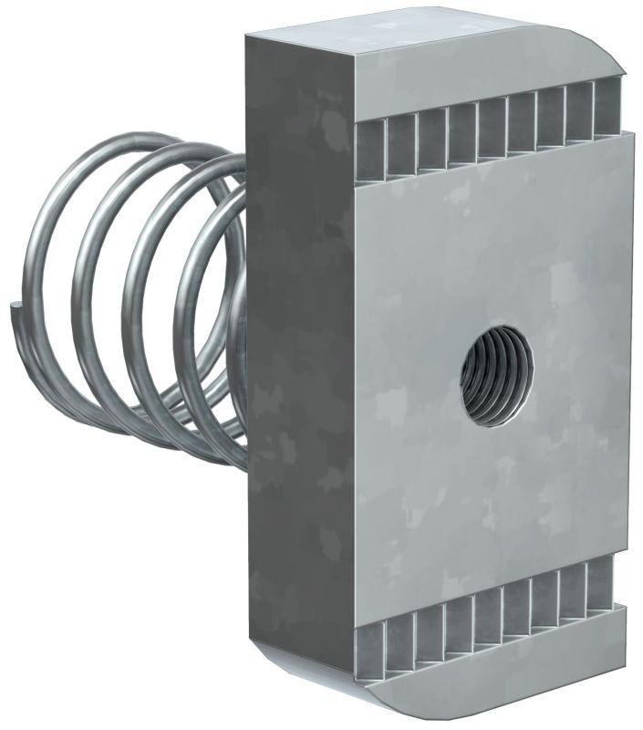 Гайка канальная с пружиной предназначена для крепления элементов STRUT-системы между собой, а также кабельных лотков к STRUT-консолям.