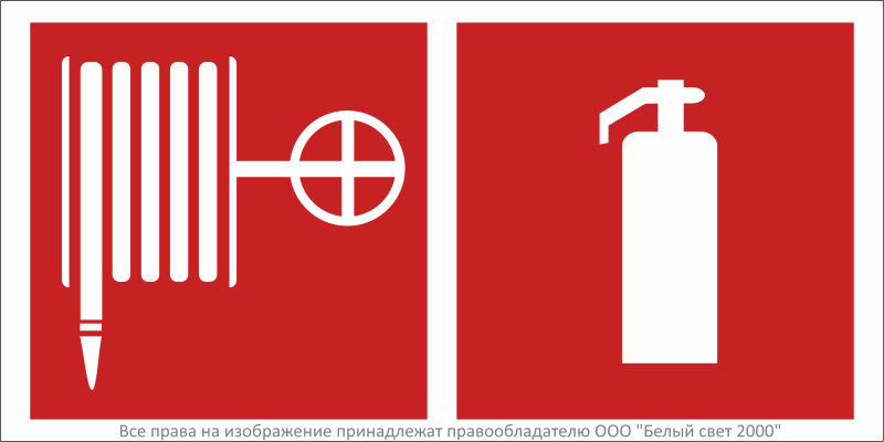 Знак безопасности «Пожарный кран и огнетушитель», габаритные размеры 300х150 мм, фактические размеры 300х150 мм, сигнальный цвет — красный, контрастный цвет — белый