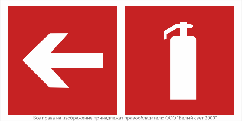 Знак безопасности «Указатель движения к огнетушителю налево» габаритные размеры 350х175 мм, фактические размеры 350х175 мм, сигнальный цвет — красный, контрастный цвет — белый
