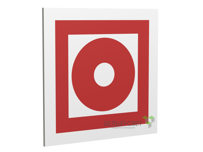 Знак безопасности «Кнопка включения установок (систем) пожарной автоматики», габаритные размеры 173х173 мм, фактические размеры 150х150 мм, сигнальный цвет — красный, контрастный цвет — белый