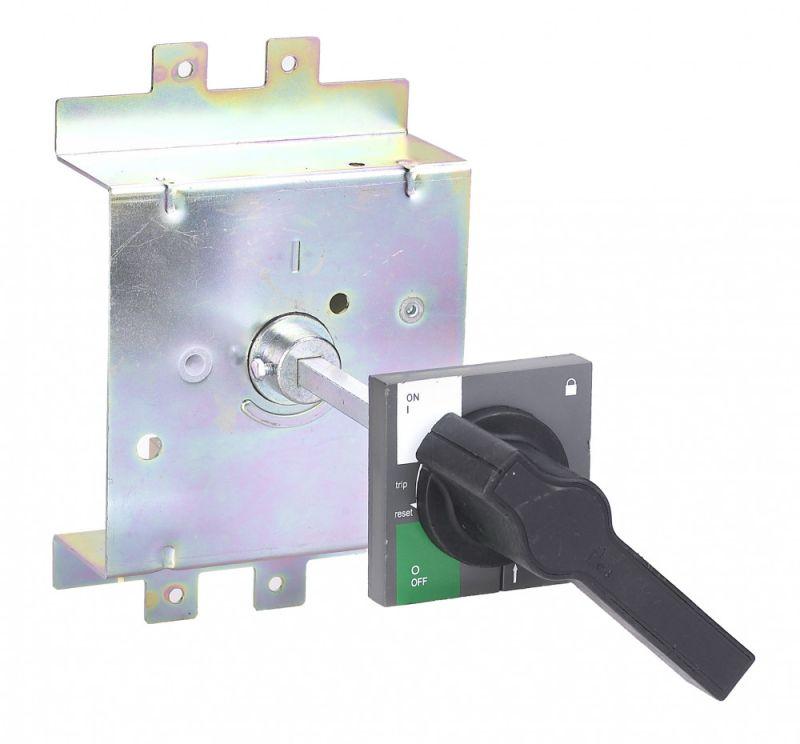 Ручка поворотная на дверь шкафа РП-336Е; состоит из ручки, удлинительной оси и поворотной рукоятки; предназначена для ручного дистанционного переключения (включения и отключения) автоматического выключателя серии ВА-336Е без открытия двери шкафа.