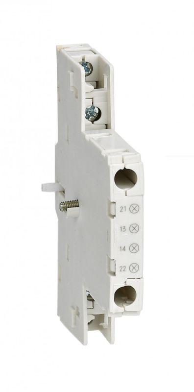 Дополнительный контакт серии ДК-432 Dekraft; ном. раб. ток до 6 А; кол-во и тип контактов — 1НО+1НЗ; установка с правой стороны автомата. Контакт дополнительный серии ДК-432 выполняет функцию контакта состояния автоматического выключателя защиты двигателя серии ВА-432: включен — выключен. Переключение контактов происходит, даже если рукоятка управления выключателя удерживается во взведенном положении.
