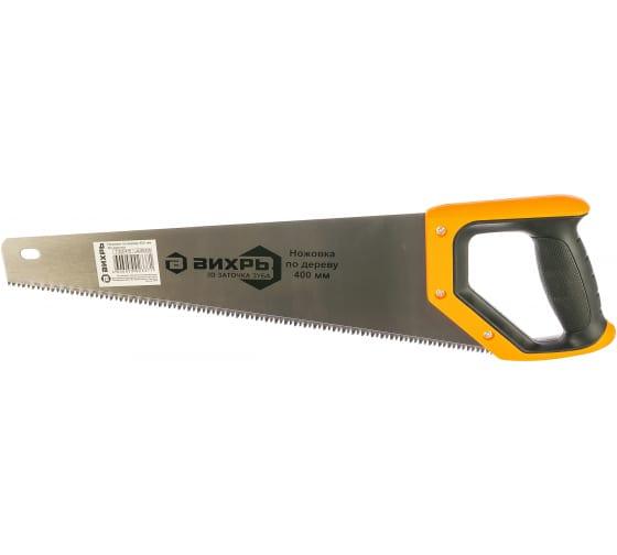 Ножовка ВИХРЬ 400 мм с трехмерной заточкой и двухкомпонентной рукояткой применяется для продольного и поперечного пиления.