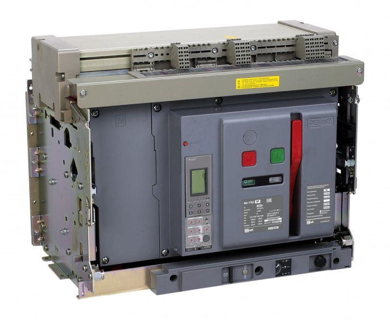 Воздушный автоматический выключатель серии ВА-752 Dekraft; 4P; номинальный ток 4000 А; отключающая способность 100 кА, стационарный, блок управления типа H; присоединения задние горизонтальные. В базовую комплектацию входят моторный привод (230 В пер.тока), 4 контакта состояния ВКЛ/ОТКЛ, сигнальный контакт, электромагнит включения (230 В пер.тока), независимый расцепитель (230 В пер.тока), сигнальный контакт положения аппарата в корзине, разделители полюсов и рамка передней панели. Выключатели с блоком управления типа H позволяют осуществлять мониторинг и диспетчеризацию защищаемой сети и нагрузок.