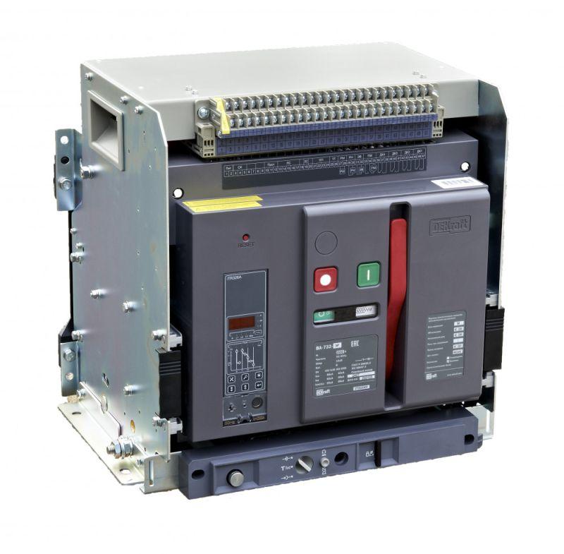 Воздушный автоматический выключатель серии ВА-732 Dekraft; 3P; номинальный ток 2000 А; отключающая способность 80 кА, выкатной, блок управления типа M; присоединения задние горизонтальные. В базовую комплектацию входят моторный привод (230 В пер.тока), 4 контакта состояния ВКЛ/ОТКЛ, сигнальный контакт, электромагнит включения (230 В пер.тока), независимый расцепитель (230 В пер.тока), сигнальный контакт положения аппарата в корзине, разделители полюсов и рамка передней панели.