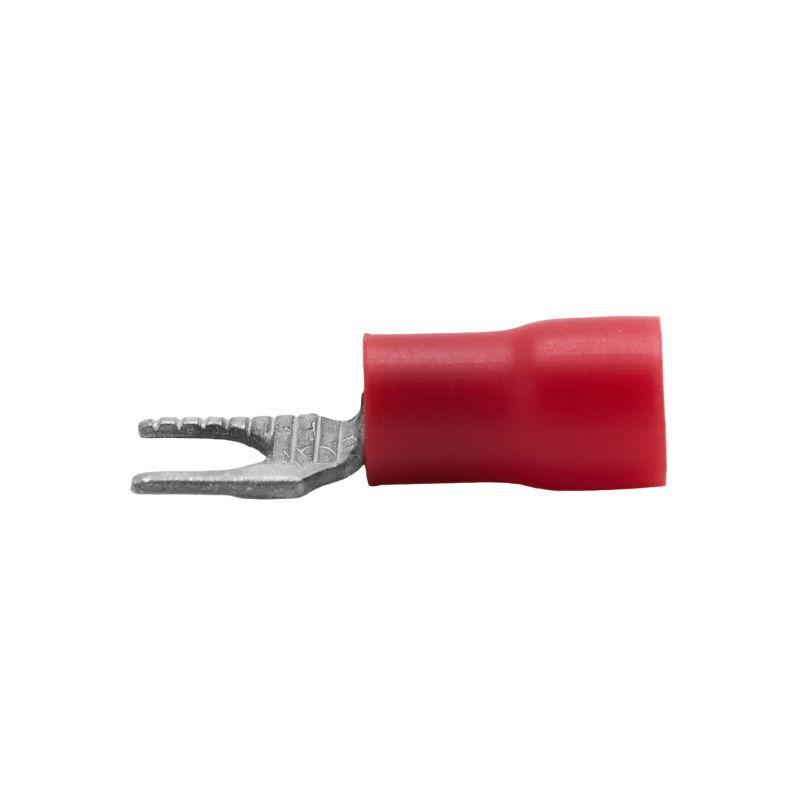 Наконечники соединяются методом «вилка-розетка» («папа-мама»). Материал контактной части – медь. Наконечник с изолированным фланцем имеет форму вилки. Луженое покрытие обеспечивает защиту от коррозии. Номинальное поперечное сечение — 0,25 — 1,5 мм2. Цвет изоляции — красный.