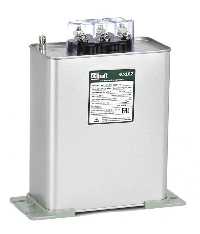 Косинусный трехфазый конденсатор самовосстанавливающегося типа серий КС-102 предназначен для корректировки коэффициента мощности в электрических сетях переменного тока 50/60 Гц напряжением 450 В. Номинальная мощность 50 кВАр.