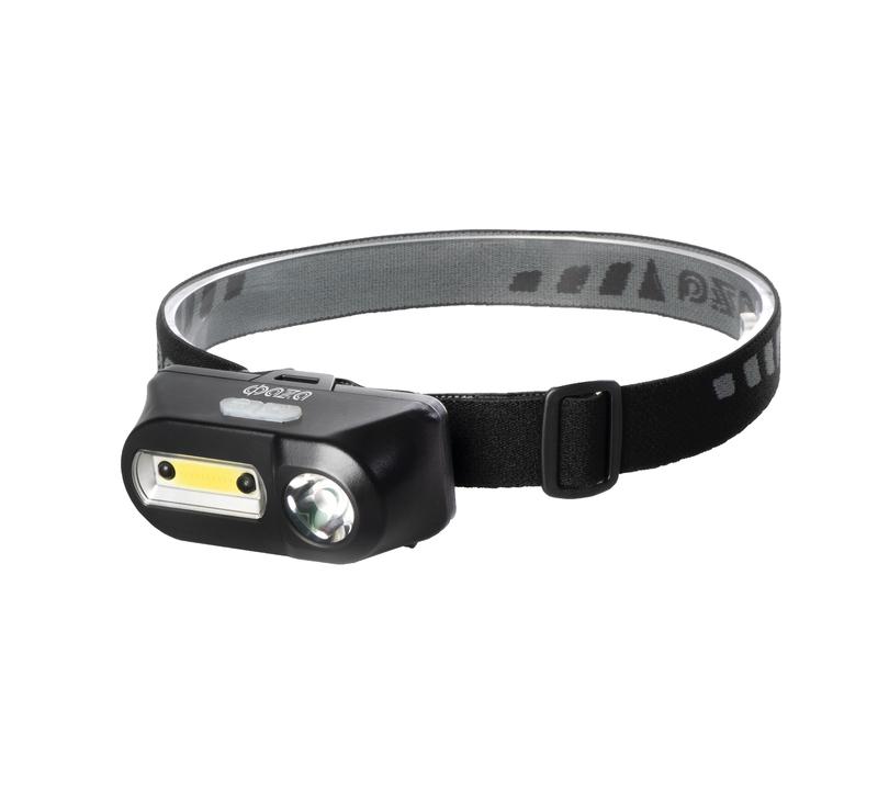 Налобный аккумуляторный влагозащищенный фонарь. Управление жестами. 3Вт COB светодиод, 130 люмен (яркий рассеянный «ближний свет»). 2Вт LED светодиод яркостью 90 люмен (направленное свечение «дальний свет»).