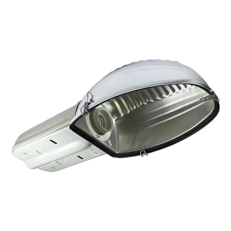 Консольный светильник для освещения улиц, дорог, площадей и других открытых пространств. Рекомендуется устанавливать на высоте 6…12 м под углом 15-20 град к горизонту, диаметр трубы кронштейна 48 мм. Корпус изготовлен из стали, покрашен порошковой краской. Отражатель алюминиевый специальной формы, обеспечивающий более равномерное освещение при меньших габаритах светильника. Рассеиватель выполнен из закаленного стекла, не бликует и не теряет пропускную способность света долгие годы. Патрон Е40. Рекомендуемый источник света лампа ДРЛ 250.