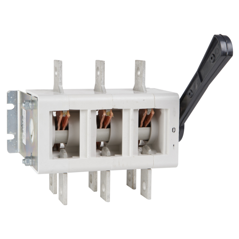 Выключатель-разъединитель 3 полюсный на номинальный ток 400 А, в котором установлена несъемная рукоятка.