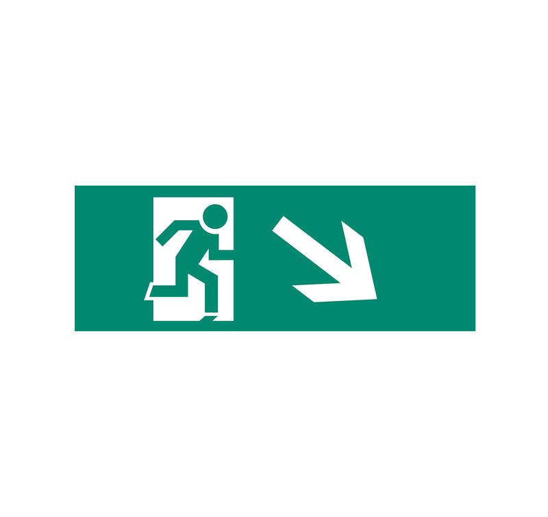 Наклейка для ДСА-503 «Направление к эвакуационному выходу направо вниз»