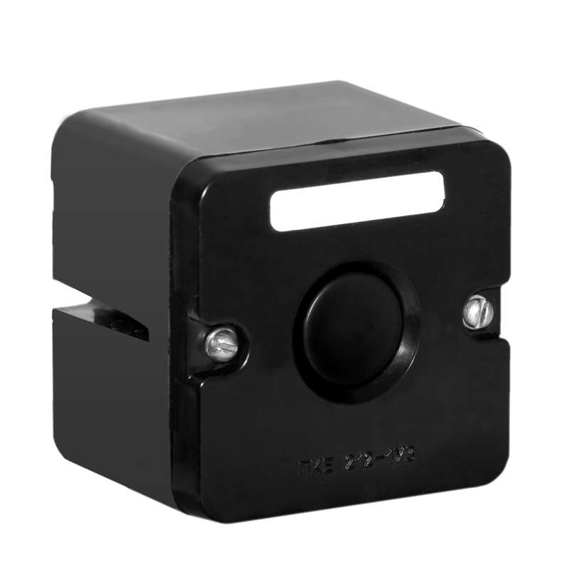 Пост кноп. ПКЕ-212/1 кнопка «Пуск» черн. Электродеталь представляет собой пластмассовую панель черного цвета с подпружиненными толкателями и контактными элементами, имеющими по два изолированных друг от друга электрических контакта.