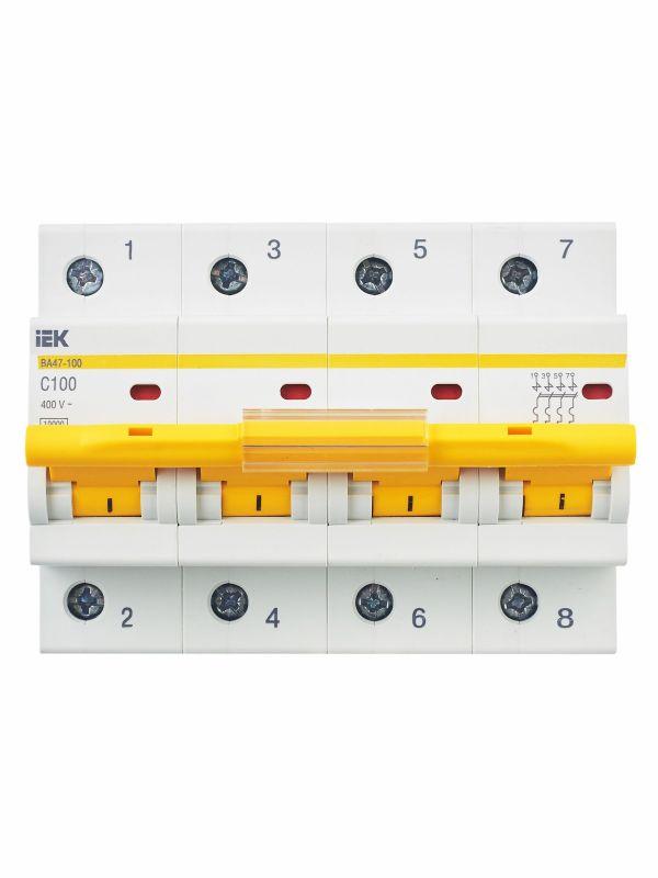 Выключатель автоматический модульный 4п C 100А 10кА ВА47-100 KARAT IEK MVA40-4-100-C — выключатель автоматический модульный оптом