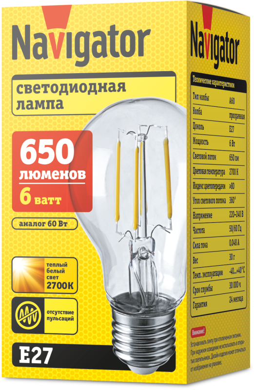 Номинальный световой поток | 650 лм |