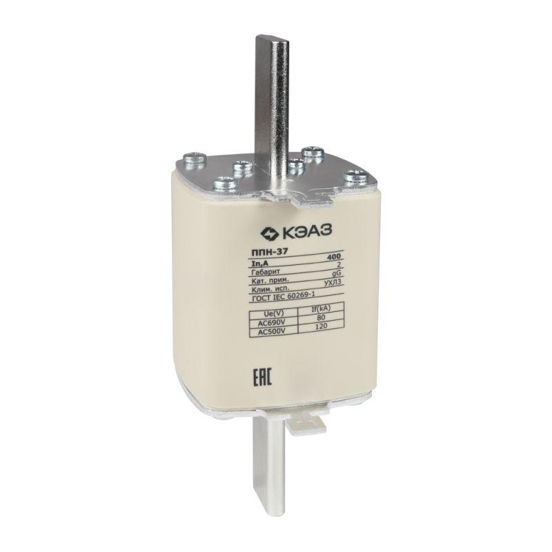 Предохранитель ножевого типа на номинальный ток 400 А, габаритом 2 и потерями мощности 34 Вт.
