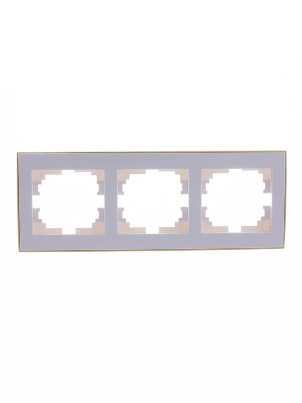 Рамка 3-м Rain горизонт. с зол. боковой вставкой бел. LEZARD 703-0226-148 — рамка декоративная для электроустановочных устройств оптом