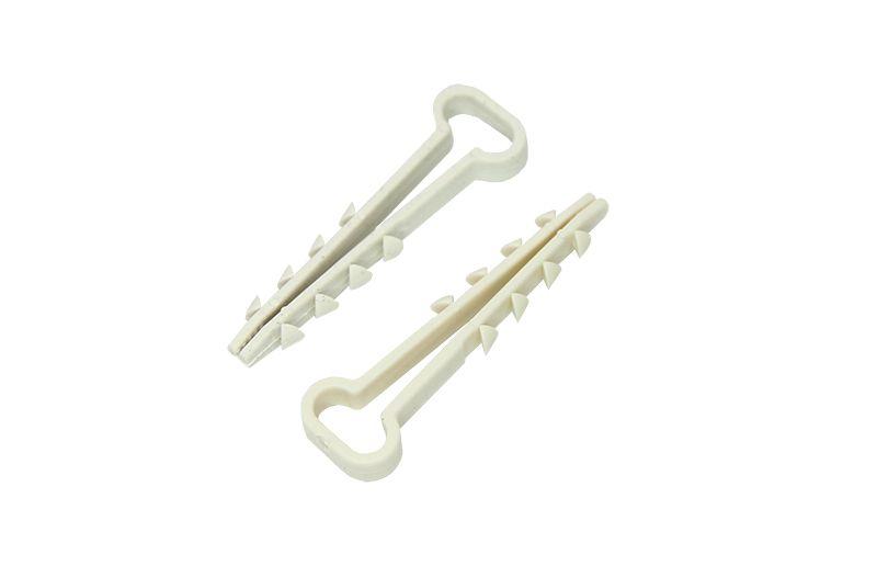 Дюбель-хомут представляет собой крепежное изделие с петлей для удержания кабеля и уникальной системой боковых шипов типа «елочка». Благодаря шипам крепеж легко вставляется в отверстие и не выпадает, а для извлечения такого дюбеля понадобятся плоскогубцы. Важно: для надежной фиксации дюбеля необходимо соблюдать точные параметры при сверлении отверстия, а для этого желательно использовать новую оснастку, которая не успела износиться. Дюбель может быть установлен в бетон, кирпич, газобетон и природный камень. Морозостойкие добавки добавляют крепежу устойчивость к низким температурам и позволяют использовать его на улице или в неотапливаемых помещениях.