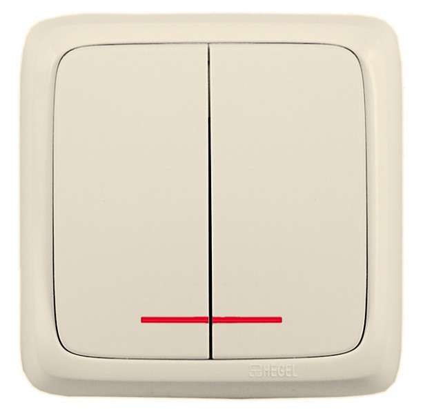Выключатель 2-кл. ОП Альфа 16А IP20 250В с индикацией с изолир. пластиной сл. кость HEGEL ВА16-154-01 — выключатели, переключатели оптом