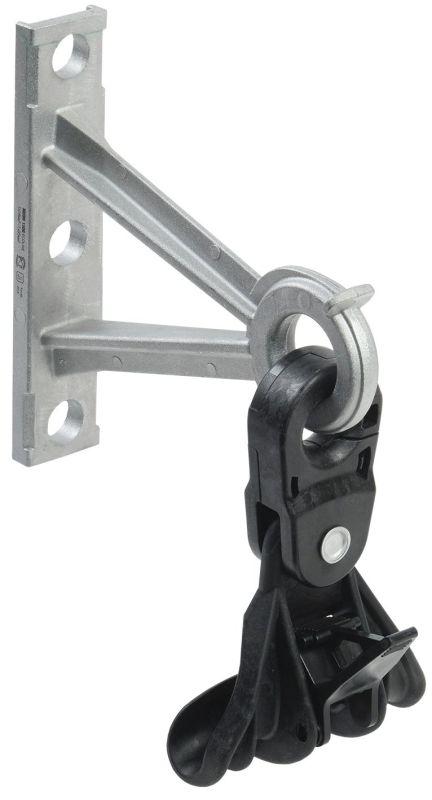 Промежуточные поддерживающие зажимы предназначены для крепления изолированной несущей нейтрали СИП до 1 кВ. Нейтраль фиксируется регулируемым зажимом. Подвижное соединение позволяет зажиму двигаться в продольном и поперечном направлениях. Комплект промежуточной подвески КОПМ 1500 представляет собой кронштейн с выступом в верхней части, не позволяющий зажиму перейти в верхнее положение. Кронштейн имеет отверстие для его крепления к опоре с помощью анкерных винтов, также предусмотрена возможность крепления кронштейна к столбам с помощью бандажной ленты. Для облегчения процесса монтажа ленты кронштейн снабжен разделительными фасками. КОПМ 1500 выполнен из устойчивого к действию коррозии алюминиевого сплава в сборе с поставляемым отдельно промежуточным зажимом ЗПН 1500, изготовленным из полимера, укрепленного стекловолоконной структурой, устойчивого к ультрафиолетовому излучению и погодно-климатическим условиям.