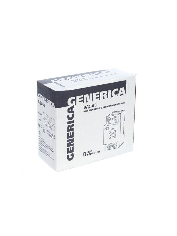 Быстродействующий защитный выключатель ВД1-63 (УЗО) GENERICA — устройство электронного типа, зависящее от напряжения и реагирующее на дифференциальный ток, без встроенной защиты от сверхтоков. Предназначен для защиты человека от поражения электрическим током.