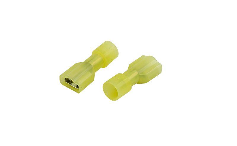 Клемма плоская полностью изолированная (КППИн гн — 6.6 мм) нейлон 4-6 мм2 Yellow REXANT предназначена для создания качественного подключения электрооборудования или соединения проводов между собой, которое при необходимости, возможно разъединить без лишних усилий. Такая клемма используется для оконцовывания многожильных медных проводов при монтаже мобильных электрических контактных соединений на подвижном составе (автомобиле-, вагоно-, самолето- и судостроении) или в других местах, где важна надежность соединения (к примеру, телефонное или климатическое оборудование).