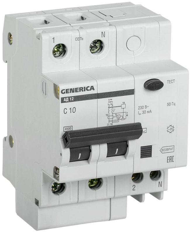 Выключатель автоматический дифференциального тока 2п 10А 30мА АД12 GENERICA MAD15-2-010-C-030 — выключатель автоматический дифференциального тока оптом