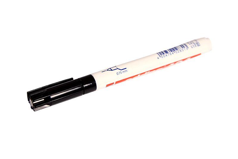 Перманентный маркер E-404 (для рисунка печатных плат) черный предназначен для нанесения постоянных, практически не удаляемых надписей, которые не смываются водой, устойчивы к выгоранию и истиранию.