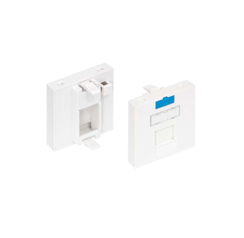 Для организации информационных портов на рабочем месте при помощи коробов, колонн и внутренних розеток применяется широкий спектр вставок французского стандарта Mosaic 22,5х45 мм и 45х45 мм. Вставки фиксируются в лицевых панелях при помощи удобных защелок и при необходимости легко демонтируются. В NMC-PM1P-PF-WT устанавливается 1 модуль Keystone любого типа. Вставки снабжены шторкой для защиты гнезда от попадания пыли при отключенном коммутационном шнуре. В комплекте со вставками идет набор цветных иконок. Кроме этого имеются дополнительные площадки для маркировки, закрытые съемными прозрачными крышками.
