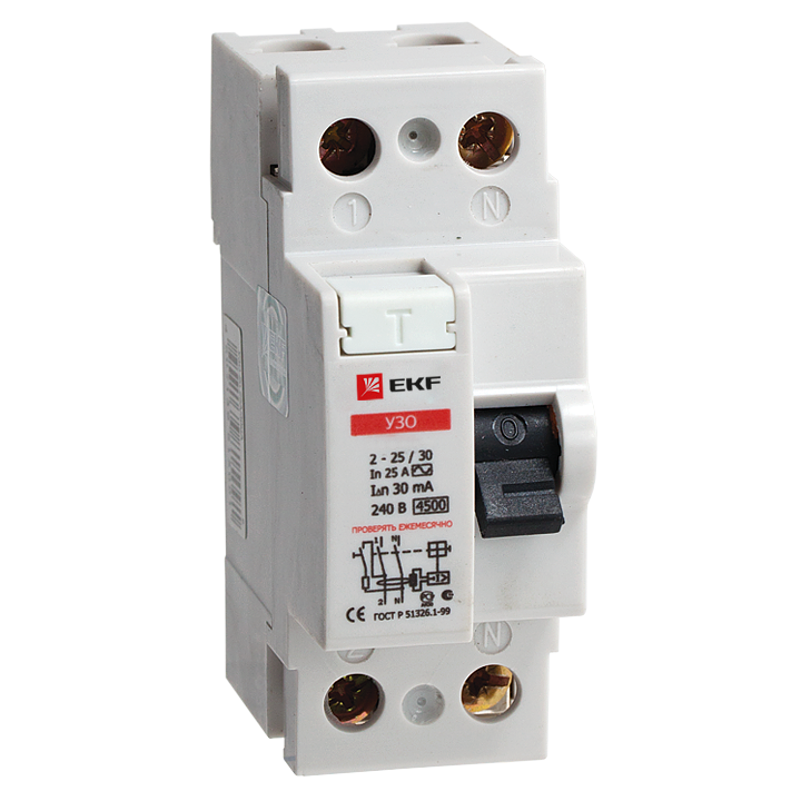 Механический коммутационный аппарат, предназначенный для включения, проведения и отключения токов при нормальных условиях эксплуатации, а также размыкания контактов в случае, когда значение дифференциального тока достигает заданной величины в определенных условиях
