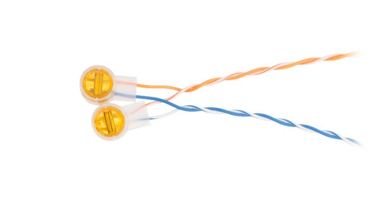 Соединители проводов типа «скотчлок» предназначены для быстрого сращивания и разветвления жил кабеля и широко используются при построении телефонии, где требуется соединить от 2 до 3 жил с одинаковым или разным диаметром. Соединители EC-SL-UY2-YL-100 предназначены для соединения двух жил. Соединители типа «скотчлок» не требуют снятия изоляции с проводов и заполнены гидрофобным гелем, препятствующим проникновению влаги и окислению контактов. Двойной врезной элемент обеспечивает надежный контакт и хорошие передаточные характеристики.